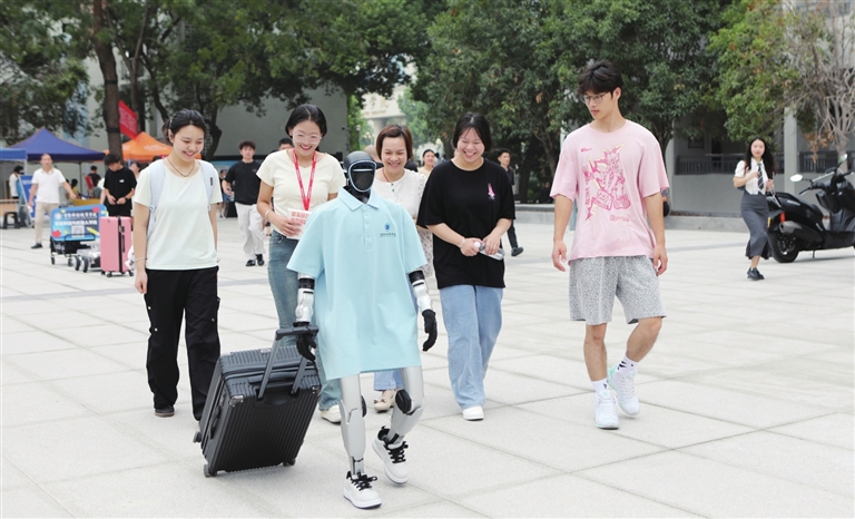 本报讯(渝西都市报记者 陈仕川 文/图)9月4日,位于永川区的重庆科创职业学院迎来了2025级新生报到。校园内人头攒动,气氛热烈,但与往年不同的是,一系列充满科技元素的迎新服务成为今年最亮眼的风景线,为新生和家长带来了别具一格的入学体验,也上了一堂生动的“专业启蒙课”。