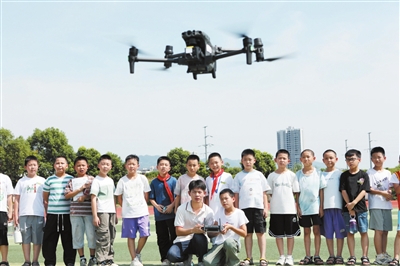 在“智趣课堂”环节,小学生们踊跃参与互动体验:在大学生志愿者的指导下,他们操作无人机模拟器,控制机器人完成简单指令,与“智教授”进行智能问答。现场气氛热烈,孩子们争相举手提问、积极尝试,展现出对人工智能和智能制造的浓厚兴趣。