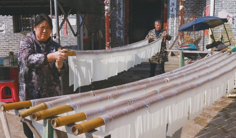 “冬天才壮观,家家户户都做粉,前坪全是晾晒的粉皮。”曹晓琴说,现在食客们慕名而来,手工切粉一时供不应求,村民们捡拾起撂下多年的制粉工艺,“现在有30多家”。天晴的冬日,家家户户炉火旺盛,米香弥漫,能见到阳光的空地里,满是粉皮在微风中飘扬。