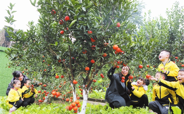 冬意渐浓,永川区三教幼儿园里的柑橘树上挂满了金灿灿的果实。12月9日,该幼儿园党支部开展“‘橘’香满园、我采摘、我快乐”丰收采摘活动。
