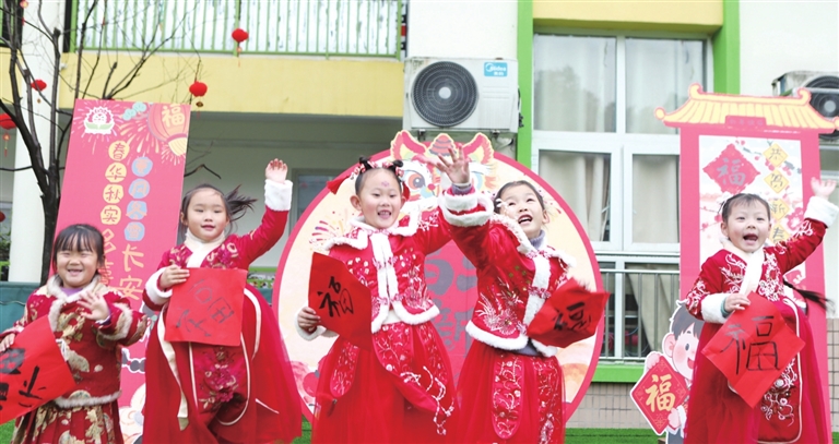 活动中,该园通过升国旗、唱国歌、幼儿律动舞蹈、非遗活动以及逛庙会、选年货、享美食等形式,让幼儿们在体验中收获成长,在陪伴中感受温暖,在欢喜中迎接新年。