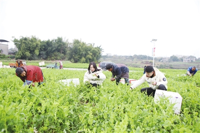 1月3日,永川区十里荷香农业园区,不少市民游客在园区赏花、采摘草莓、采收豌豆荚、磨豆浆、推磨等,感受田园风光,共享户外采摘的乐趣,尽享假日的美好时光。