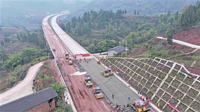 渝赤叙高速横跨重庆、四川、贵州三地,其中嘉平镇境内路段长约11公里,串联起紫荆隧道、嘉平互通等重要节点工程。此次试验段的成功摊铺,不仅为后续施工积累了宝贵的技术数据,更让沿线群众对“出门上高速”的期盼愈发真切——项目建成后,将结束嘉平镇等区域无高速下道口的历史,大幅缩短黔川渝三地通行时间,为成渝地区双城经济圈建设注入交通动力。