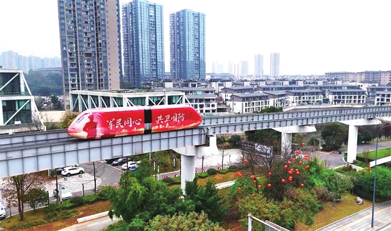 作为璧山区城市交通闪亮名片,云巴凭借无人驾驶、智能便捷的优势深受青睐,此次打造的专列让这一“移动空间”焕发教育新价值。记者在现场看到,整列云巴从里到外都被精心“武装”:亮眼的红色车身搭配“军民同心 共卫国防”等标语,成为城市里一道流动的风景线;车厢内的展板上则是各类征兵政策、优待福利及威武的军兵种风采海报。