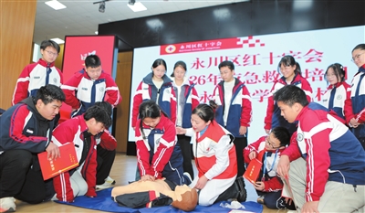1月30日,永川中学文昌校区邀请永川区南大街街道社区卫生服务中心基层红十字会走进校园,在散学典礼中开展“急救知识进校园,安全护航助成长”主题活动。