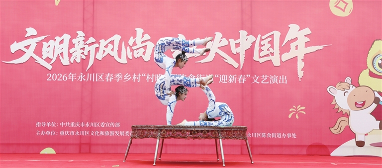 本报讯(渝西都市报记者 陈仕川 文/图)2月4日,“文明新风尚·红火中国年——2026年永川区春季乡村‘村晚’暨陈食街道‘迎新春’文艺演出”在陈食文化广场精彩上演,为广大群众带来一场充满年味儿的文化盛宴。